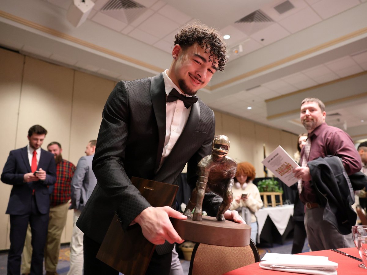The Knights’ quarterback is the first player from his school to win the prestigious award, given annually to the top senior football player in Maine.