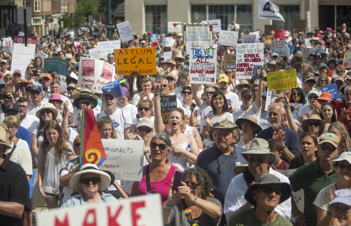 The event is one of hundreds of nationwide protests against the Trump administration’s immigration policies, which have rounded up thousands of families and children into makeshift detention facilities at the southern border.
