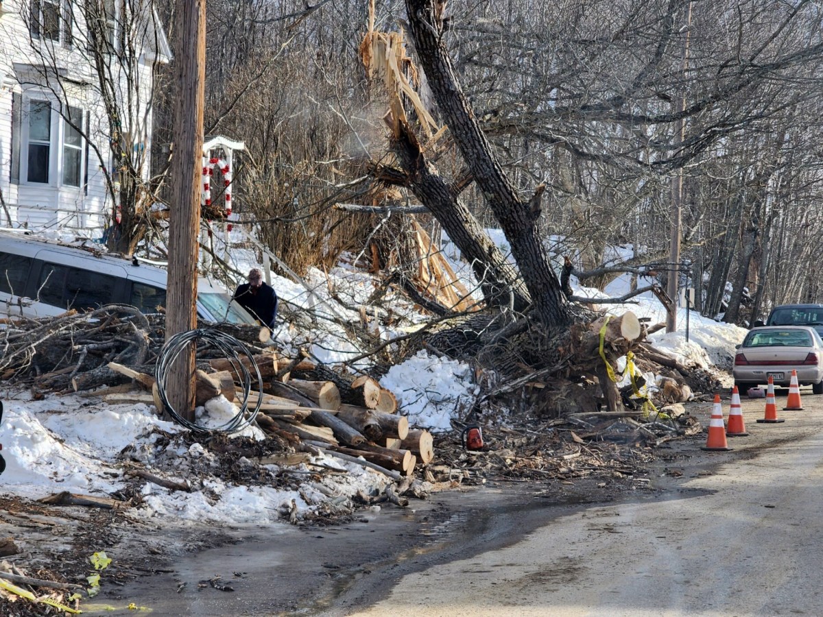 High winds Friday evening led to two cars being damaged and the electric meter torn from the house at 391 Old Jay Hill Road in Jay.