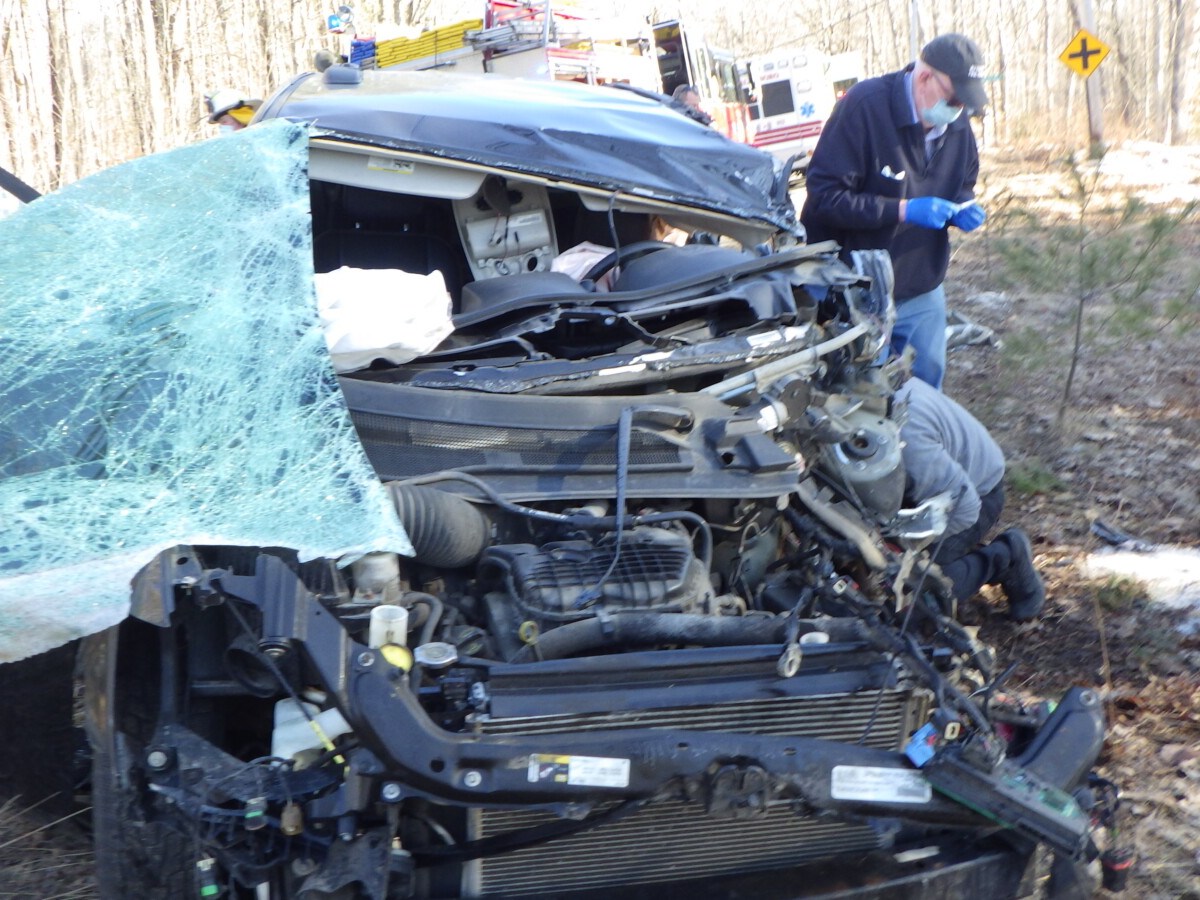 Newcastle man injured after a minivan struck a dump truck on Route 32 in Jefferson