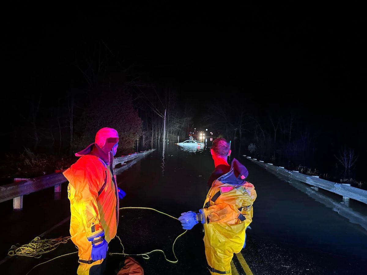 Firefighters rescued two motorists trapped in their cars by Kennebec River floodwaters on Route 24, one from a car that was floating.