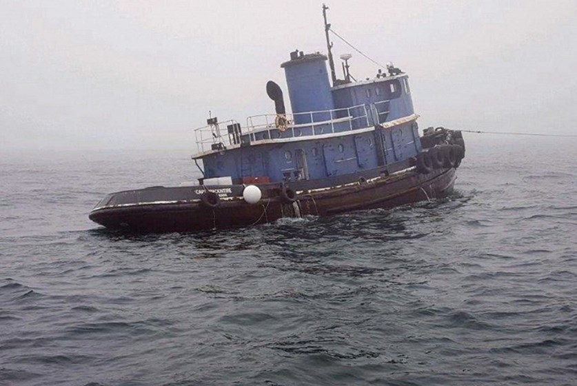 After colliding with another tug, the vessel sank Thursday in 158 feet of water about 3 miles south of Kennebunkport.