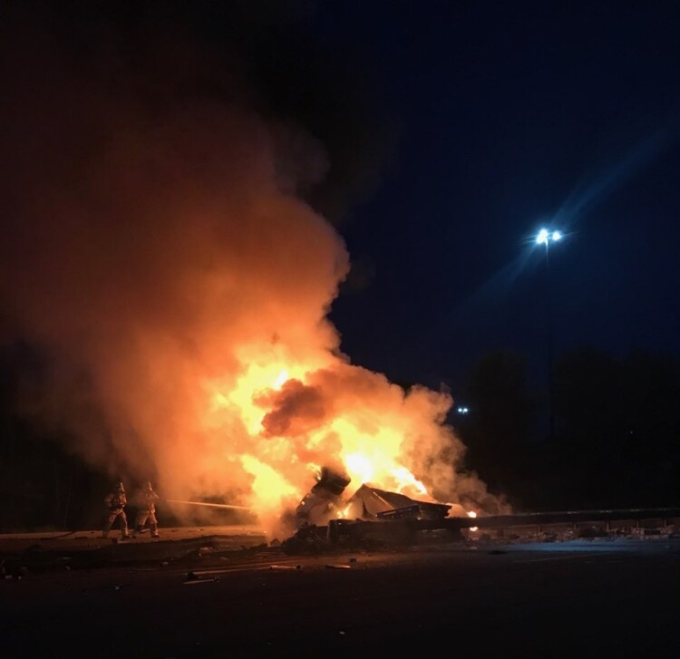 Tractor-trailer crashes and burns on Maine Turnpike in Kittery