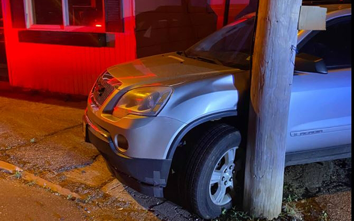 Six-year-old boy drives SUV until it gets stuck between pole and Livermore Falls building