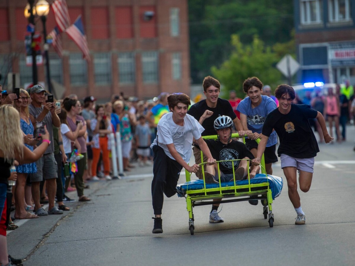 Fun, mac ‘n’ cheese cited as key factors by winners of Skowhegan bed races at Moonlight Madness