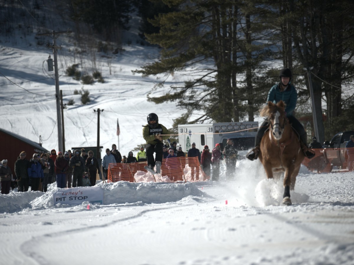 SnowFest includes a series of activities, including the only equestrian skijoring race in the Northeast which involves a horse and rider pulling a snowboarder or an Alpine skier down a 1,000-foot track of gates and jumps.
