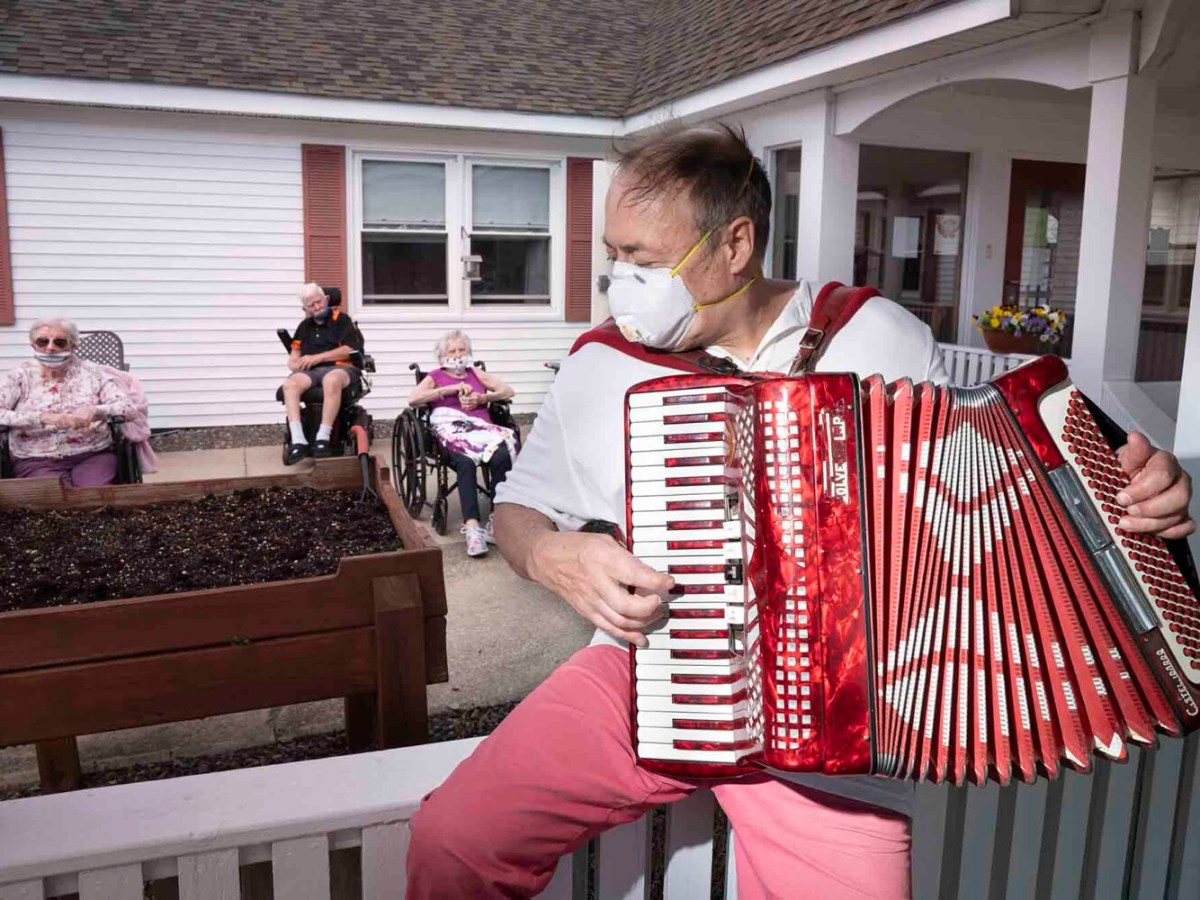 Professional accordion player Gary Sredzienski has long been playing shows at nursing homes in southern Maine. Since the virus outbreak, he’s continued the gigs remotely for free.