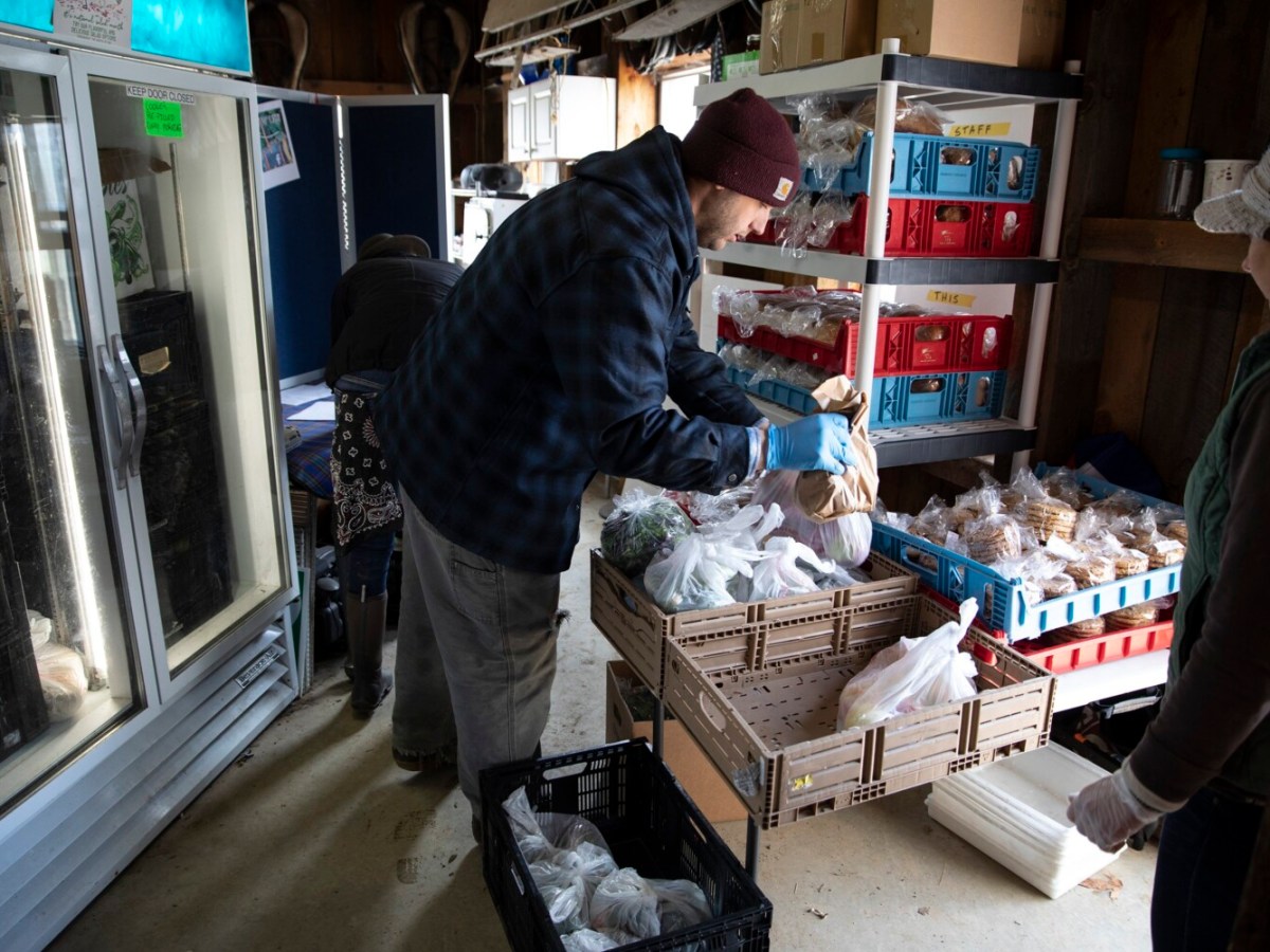 Sandy Hill Farm in Eliot provides an alternative to people who are wary of grocery stores during the pandemic, while asking customers to donate money to help with local food donations.