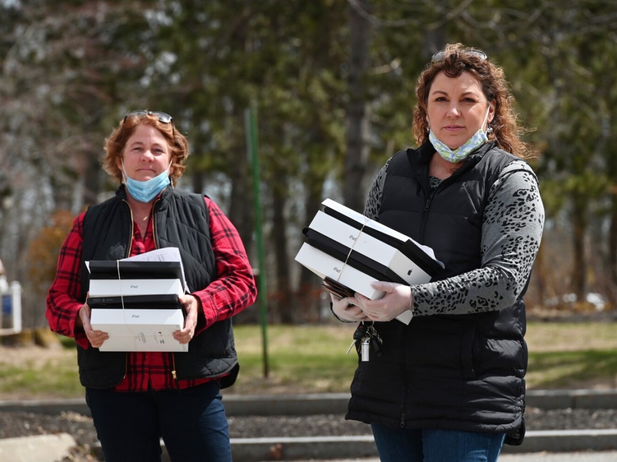 Two neighbors in Cape Elizabeth have raised funds to buy iPads they are donating at senior-living facilities.