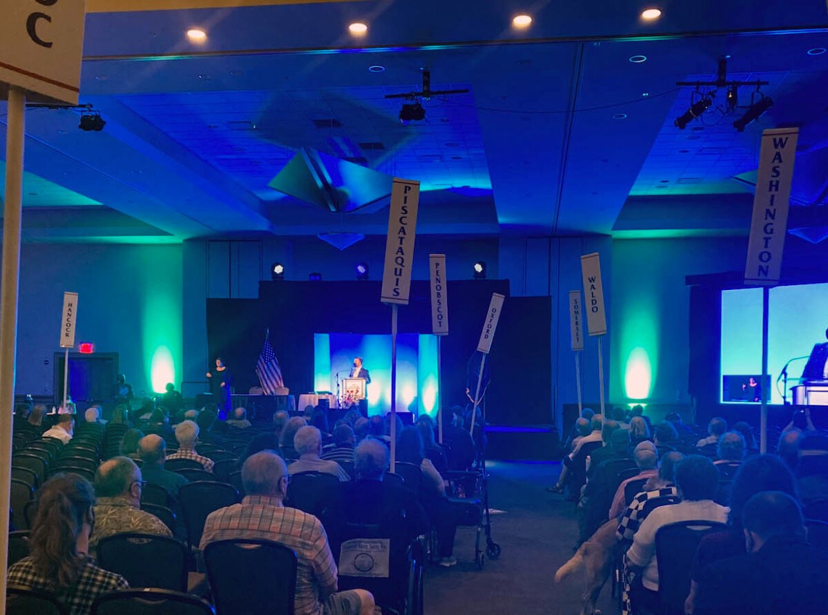 The two-day convention began Friday in Bangor and culminates Saturday with a speech by Gov. Janet Mills.