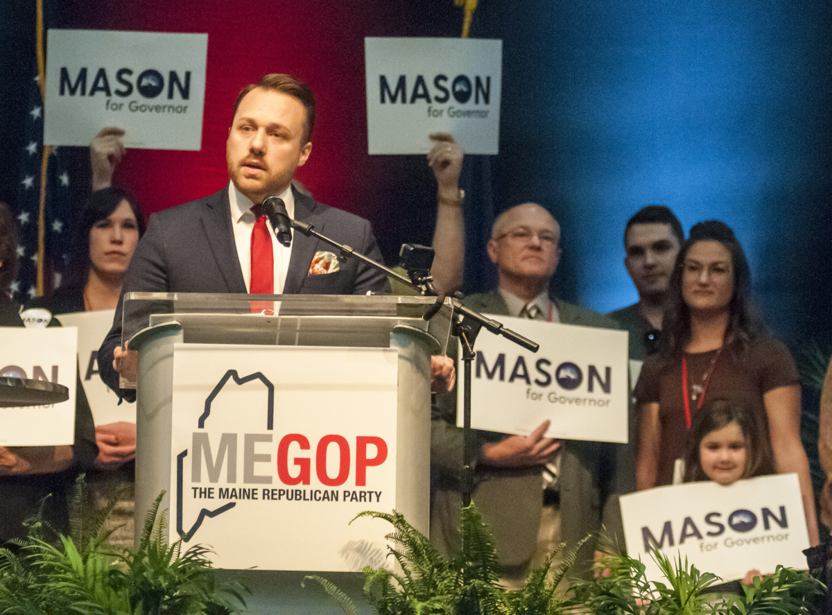 Gov. Paul LePage, in the final year of his two terms, tells delegates it’s important that one of the party’s 4 contenders succeed him in the Blaine House.