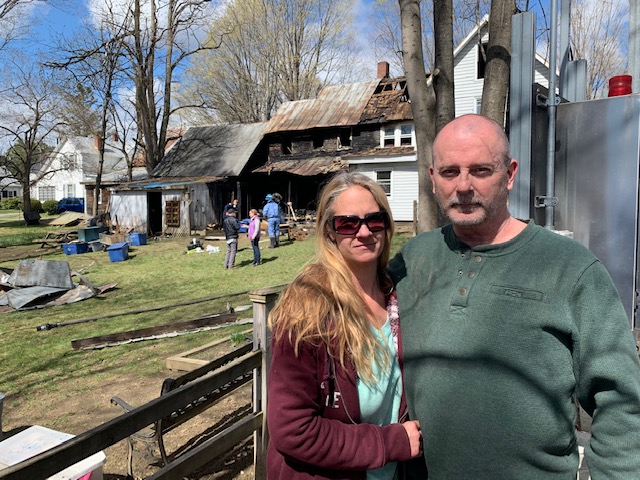 The fire reported at 7 Dinsmore St. in Skowhegan early Wednesday damaged about half of the duplex where police Officer Joel Cummings, his wife Michelle, Michelle’s sister, Melanie Alexander, and her daughter, Alexis, lived.