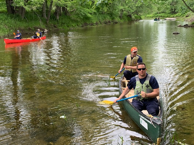 Two Maine State Police specialty units returned Wednesday to Sandy Stream in Unity where they searched the area for additional human remains after part of a skeleton from an adult male was found in the stream May 30 by kayakers.