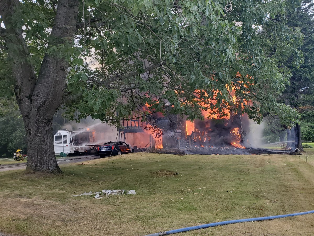 Firefighters from Oakland, Belgrade, Sidney, Rome, Smithfield and Fairfield fire departments worked at the scene and the Office of State Fire Marshal is investigating the cause.