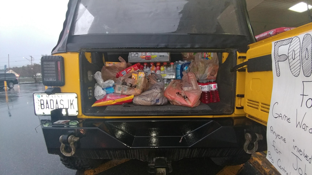 Shane Morrison, a former police officer, said it was ‘a humbling experience’ to bring food donations they had gathered to help officers working on an extensive manhunt.