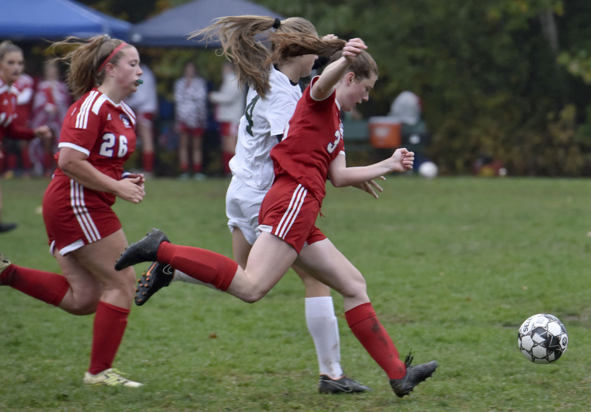 MONMOUTH — Cody Michaud scored on a corner kick in the first half to lead Monmouth to a 3-0 victory over previously undefeated Hall-Dale in boys soccer action Friday afternoon. The Mustangs (10-2) led 1-0 at the half. Tommy Neal converted a relay from Hayden Fletcher well inside the penalty box for the second Monmouth […]