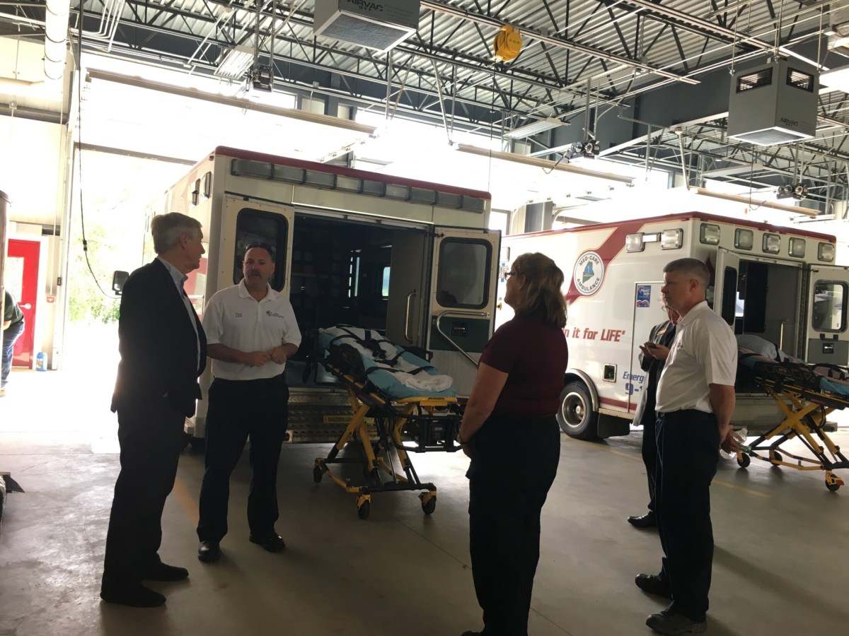 U.S. Sen. Angus King visited Med-Care Ambulance Service in Mexico on Friday afternoon to talk about health care services in rural Maine.