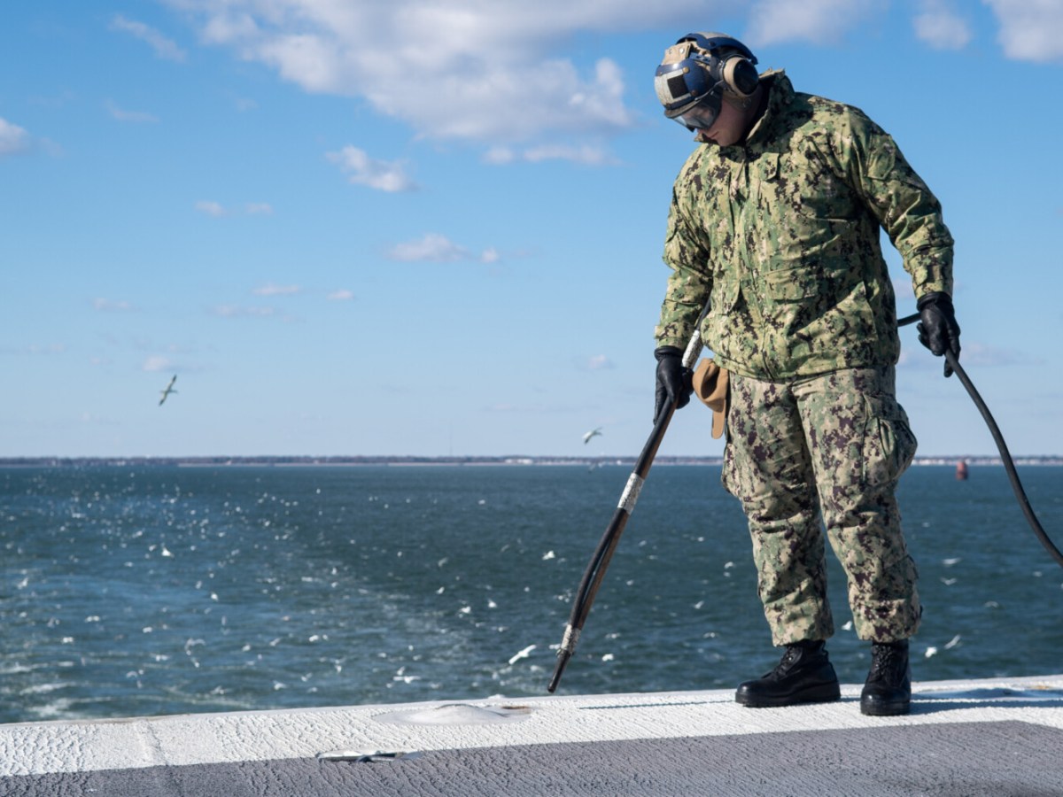 U.S. Navy Aviation Boatswain’s Mate (Handling) Airman Apprentice Kevin White, from Waldoboro, blows out padeyes on the flight deck of the aircraft carrier USS John C. Stennis (CVN 74) in Norfolk, Virginia, on Dec. 5. The John C. Stennis is conducting routine operations in support of Commander, Naval Air Force Atlantic, according to a news […]