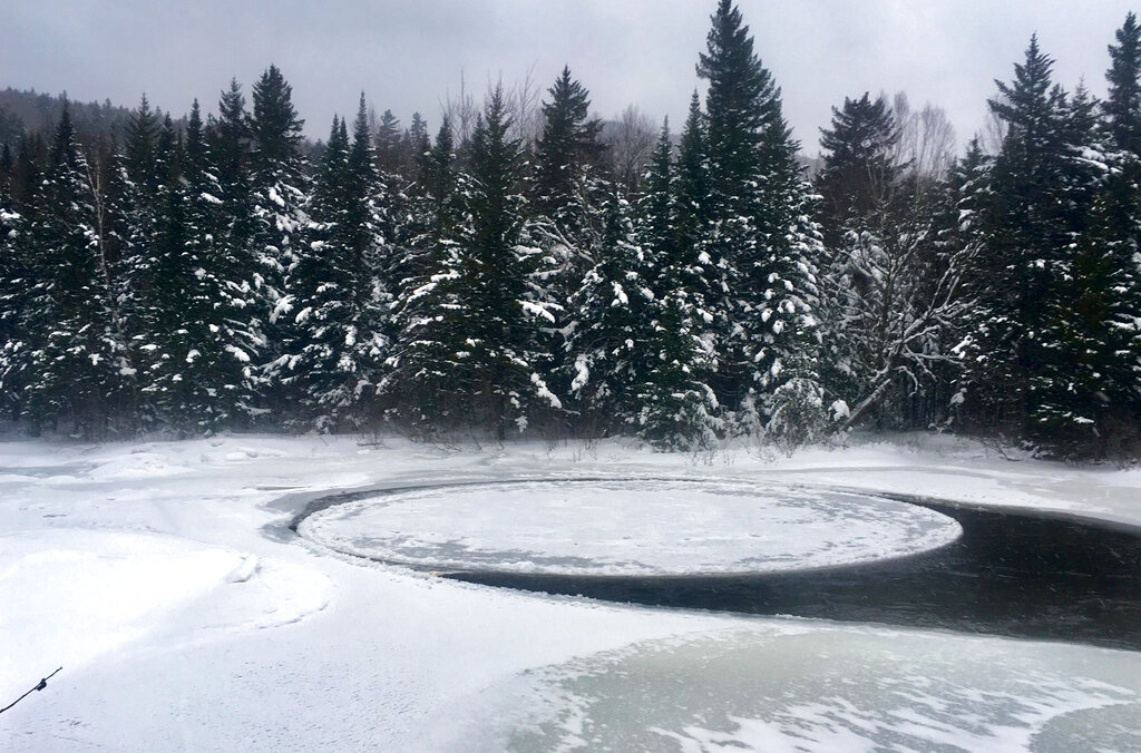 Officials at Baxter State Park in northern Maine shared a photo of an ice disk that’s about 30 or 40 feet wide.