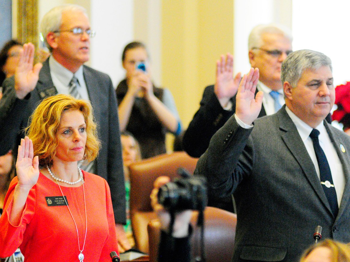 The governor makes the remarks before administering the oath of office to the newly elected members of the 128th Legislature.