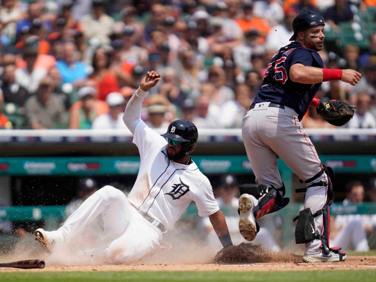 Boston loses for the sixth time in seven games, and Detroit’s Victor Reyes becomes the first major leaguer to hit a triple from both sides of the plate in a game since 2003.