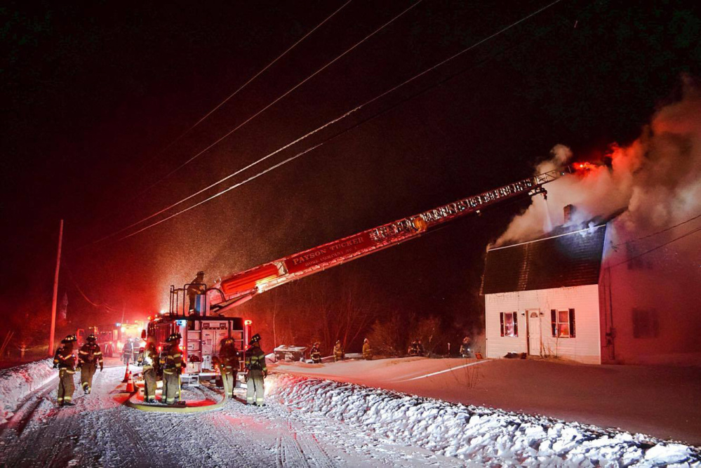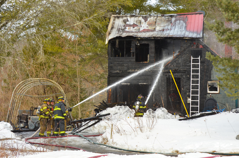 Firefighters from five towns battled the fire and the weather Tuesday night on Route 135, but the home may be a total loss.