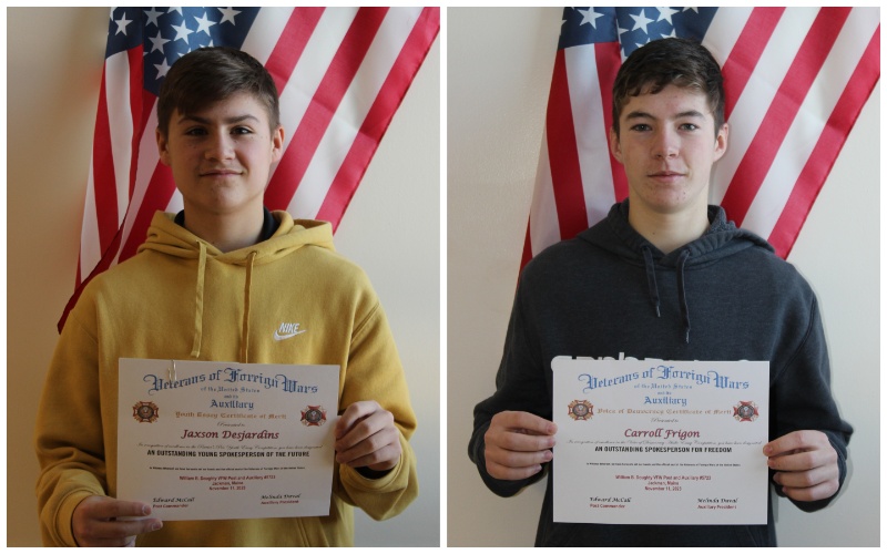 JACKMAN — Jaxson Desjardins, an eighth-grade student, and Carroll Frigon, a 10th grader, were both recognized at a recent Assembly at Forest Hills School. Students in grades six to 12 were invited to participate in an essay writing contest. For the Patriot’s Pen contest (grades six to eight), this year’s theme was “How Are You […]