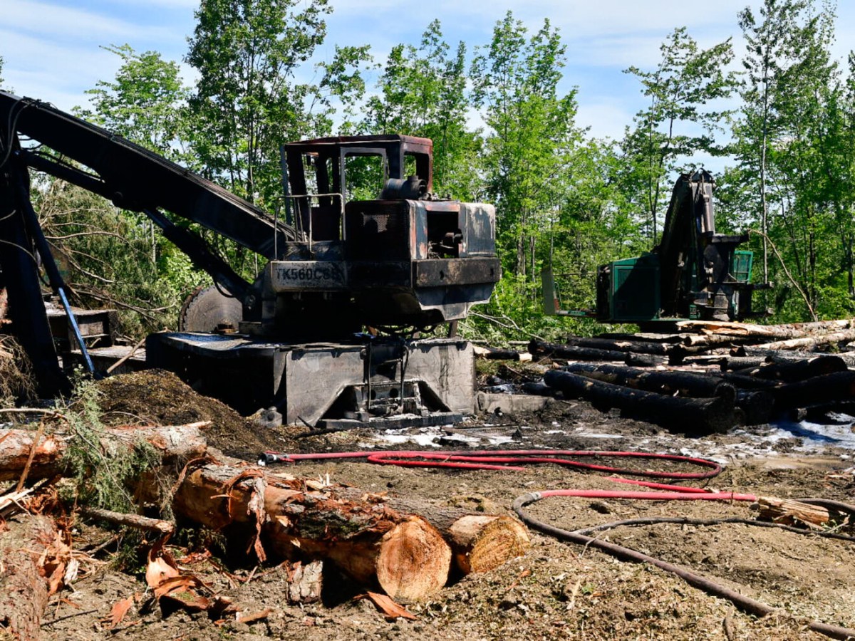 Crews from seven emergency response departments responded for the report of an explosion on Hovey Luce Road, but found only a crane and logs on fire, which they were able to extinguish.
