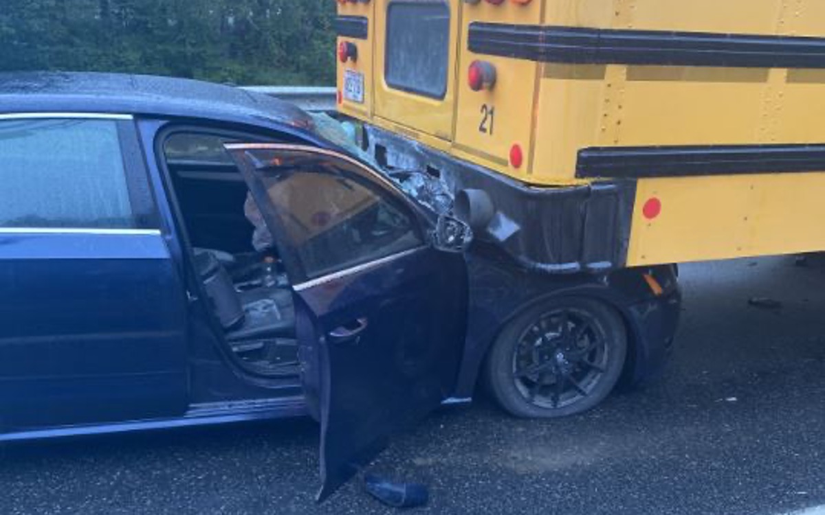 No one hurt when car drives under school bus carrying children in Kingfield