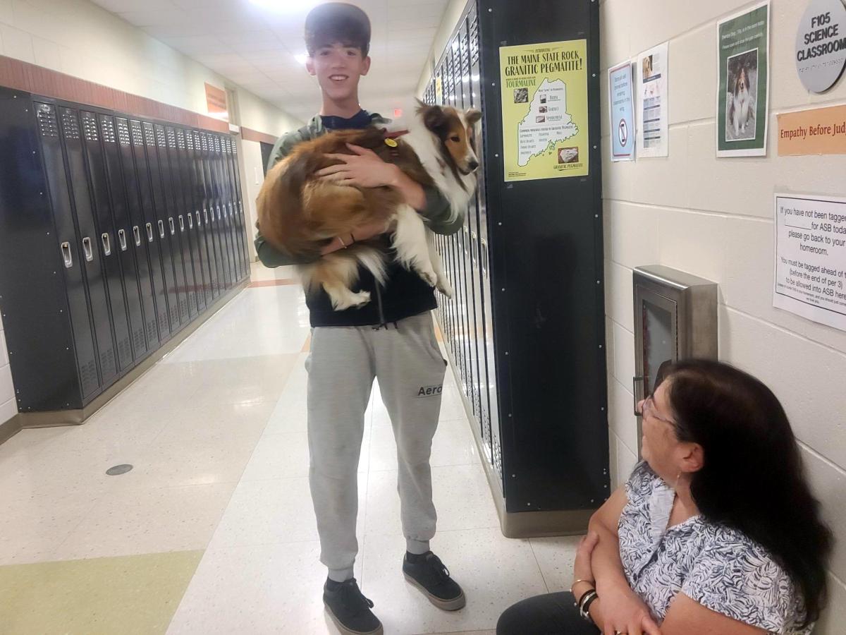 Therapy dog is a good distraction, stress reducer for students at Mt. Blue High School in Farmington