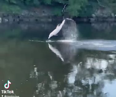 A video posted to Facebook shows the dolphin jumping around near the Norwich Marina, about 15 miles from Long Island Sound.