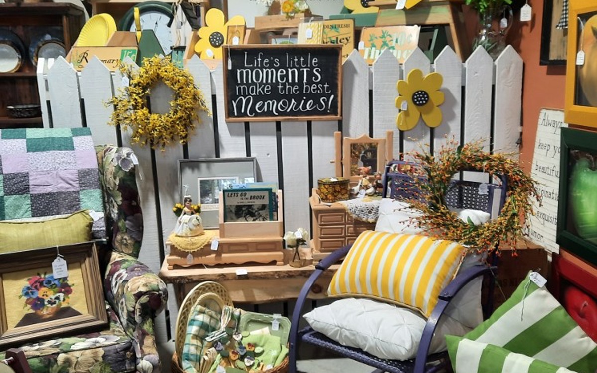 Recycled Works for ME, opening on May 24 in New Sharon, offers a variety of repurposed and handmade items crafted by owner Nancy Bowden, including unique furniture, vintage pieces, and creative decor.