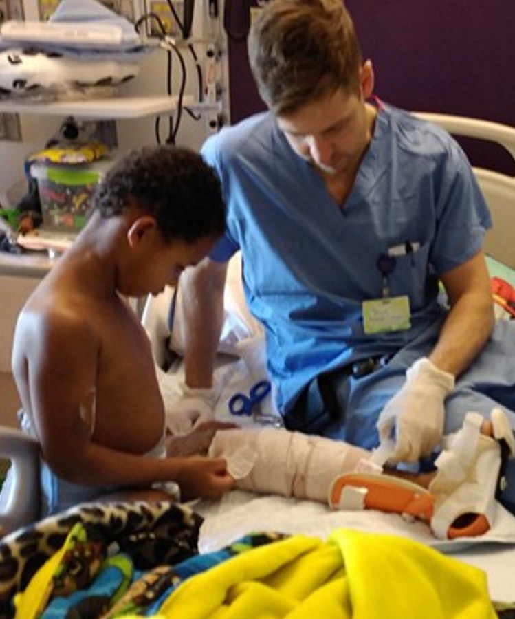 A bucket loader came down on the 4-year-old’s limbs in October.