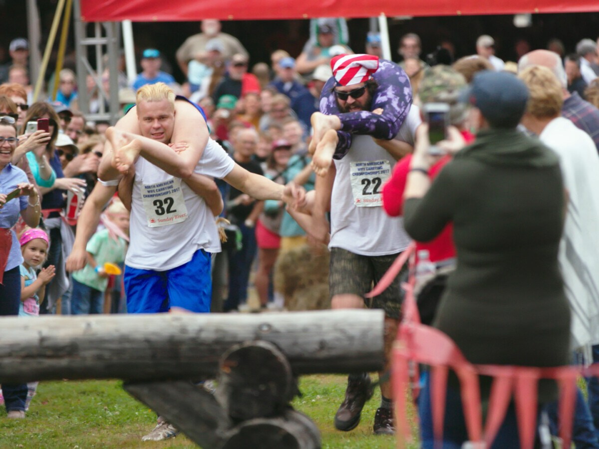 Longtime friends try for third wife-carry championship title in Newry