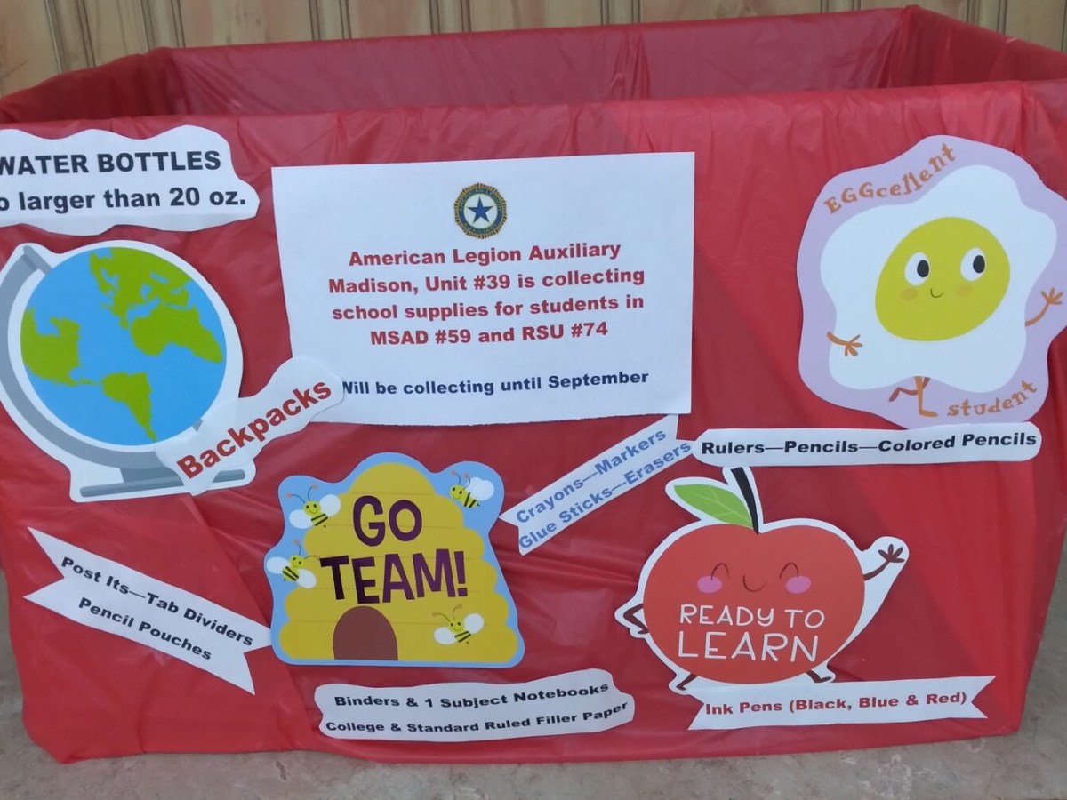 Members of the American Legion Auxiliary Unit No. 39 in Madison are collecting school supplies for children and for the classrooms in their local schools, Madison — School Administrative District 59 and Carrabec — Regional School Unit 74. A list of suggested items includes rulers, erasers, pencils, colored pencils, ink pens (blue, black and red), […]