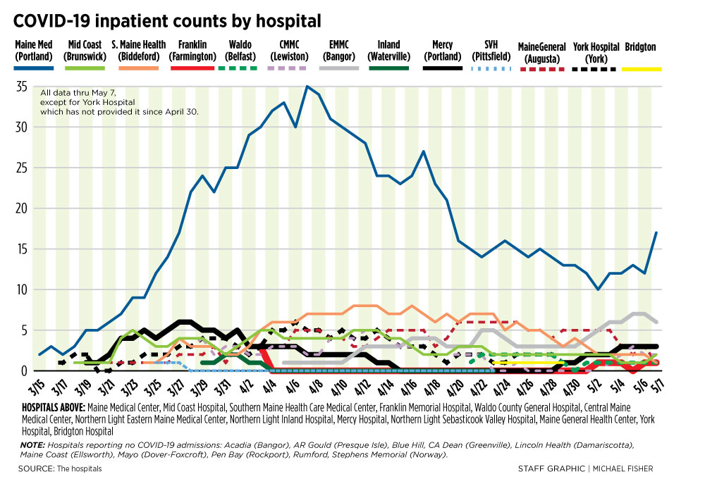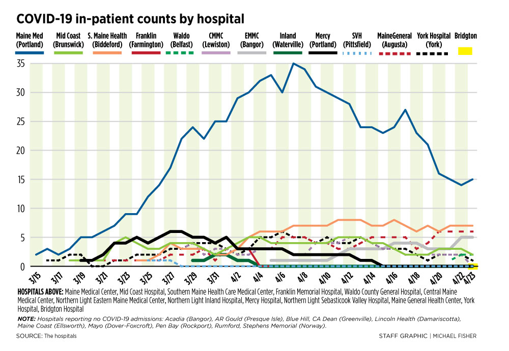Numbers of virus patients in Maine hospitals continue to flatten and decline