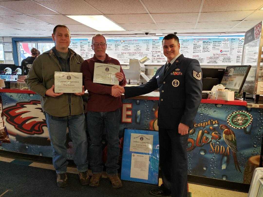 Todd Thibodeau and Andy Noel from the Korner Store in Oakland were recently presented with Honorary Recruiter Certificates on Jan. 29 by Tech. Sgt. Lujan from the Air Force Career Center in Waterville, according to a news release from the career center. Also recognized was Local Hero Doug Dickinson retired Master Chief Petty Officer with a […]