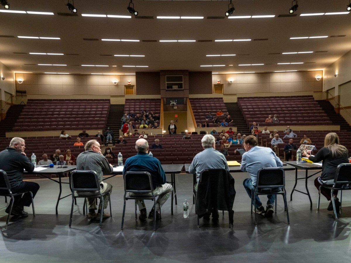 About 35 people turned out Wednesday night for the discussion about the town’s proposed $3.59 million budget, which is to go before voters May 7.