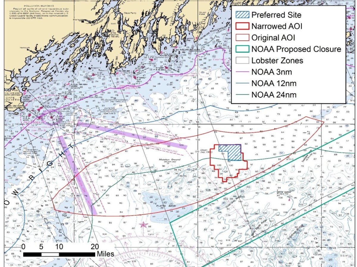 The site is a 16-square-mile area in the Gulf of Maine located about 30 miles off the Maine coast.
