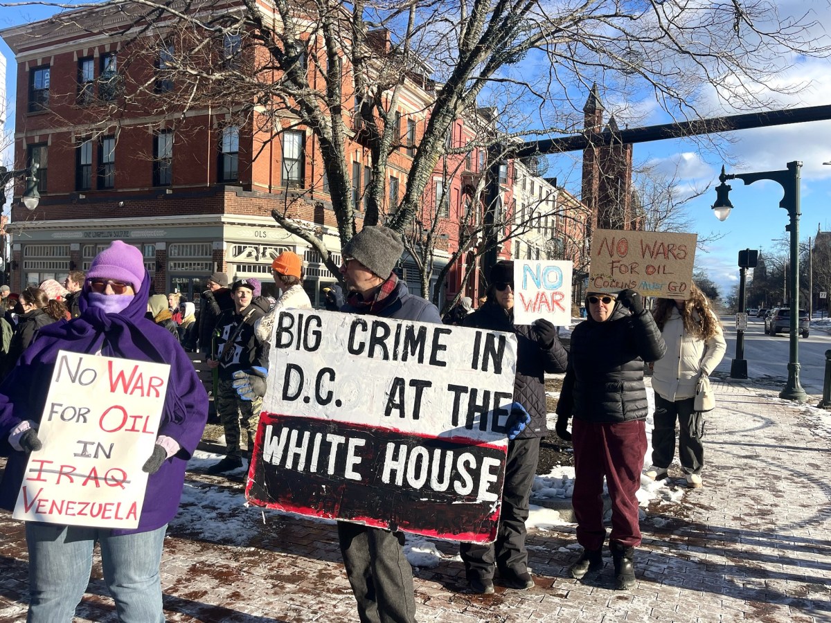 Over 100 people convened downtown on Saturday afternoon to protest President Donald Trump’s strike on the South American nation.