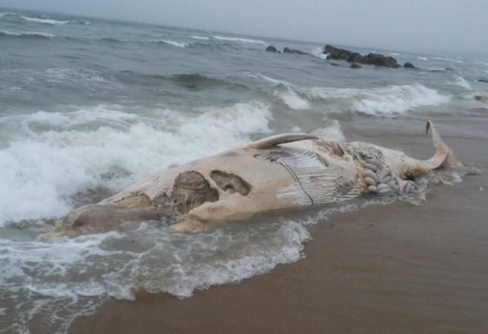 The smelly carcass, identified as that of an adult male minke whale, is the second large marine animal to turn up on shore in southern Maine in the past week.
