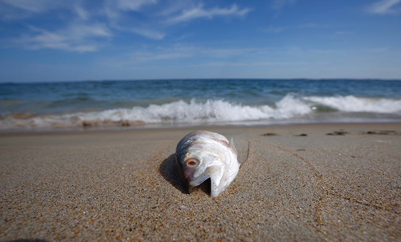 The die-off of what are believed to be pogies is an uncommon sight at the beach resort town.