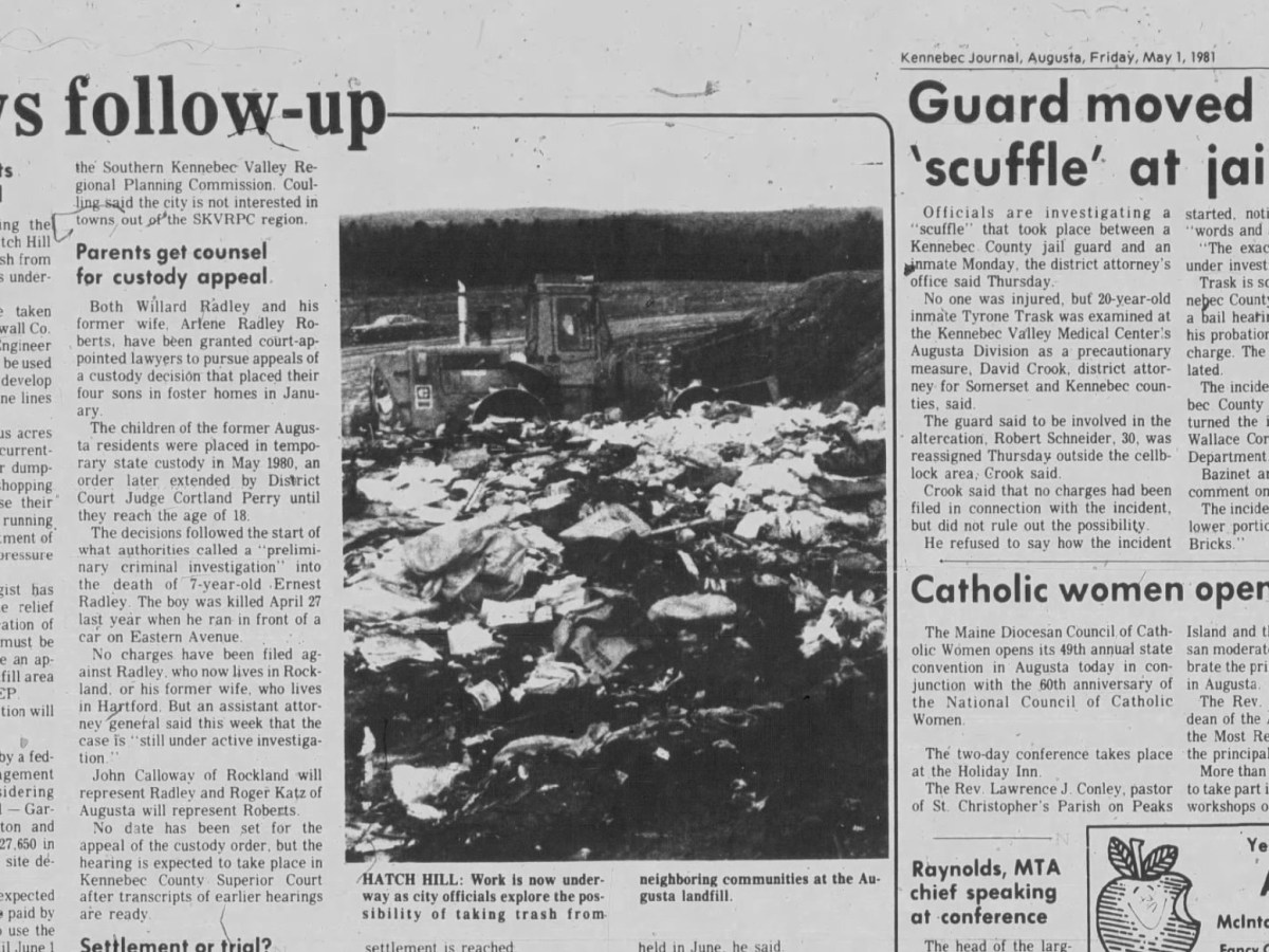 May 1, 1981: Officials investigating ‘scuffle’ at Kennebec County jail involving guard and inmate, new 1981 Augusta budget approved last night has no money for city hall repair work or to build new one, and research work beings at Hatch Hill landfill in Augusta