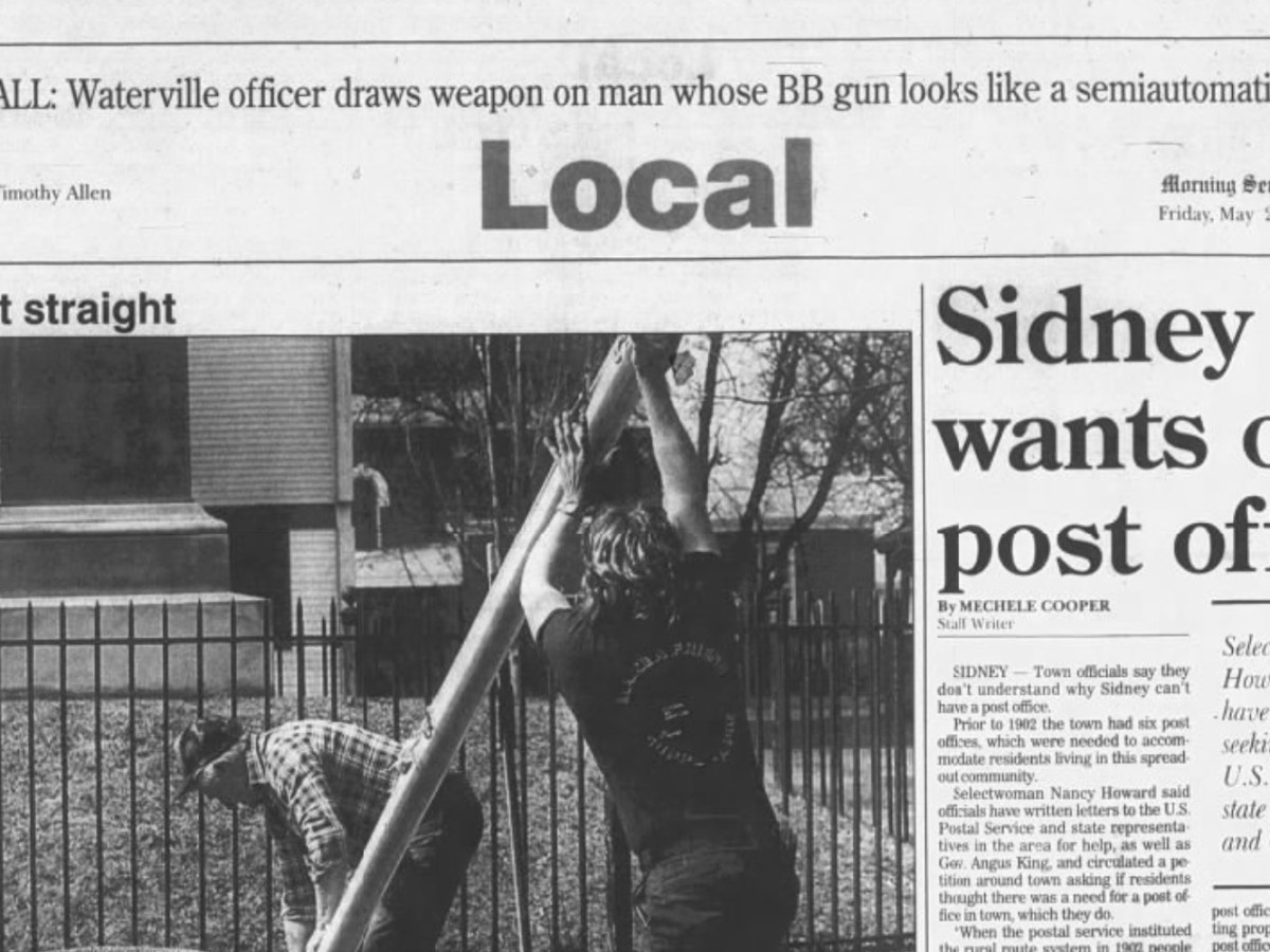 May 2, 1997: Town officials in Sidney don’t understand why they can’t have their own post office, Vassalboro Community School must rely on bottled water for drinking temporarily, and a ‘planned’ brush fire in Waterville burned out of control yesterday