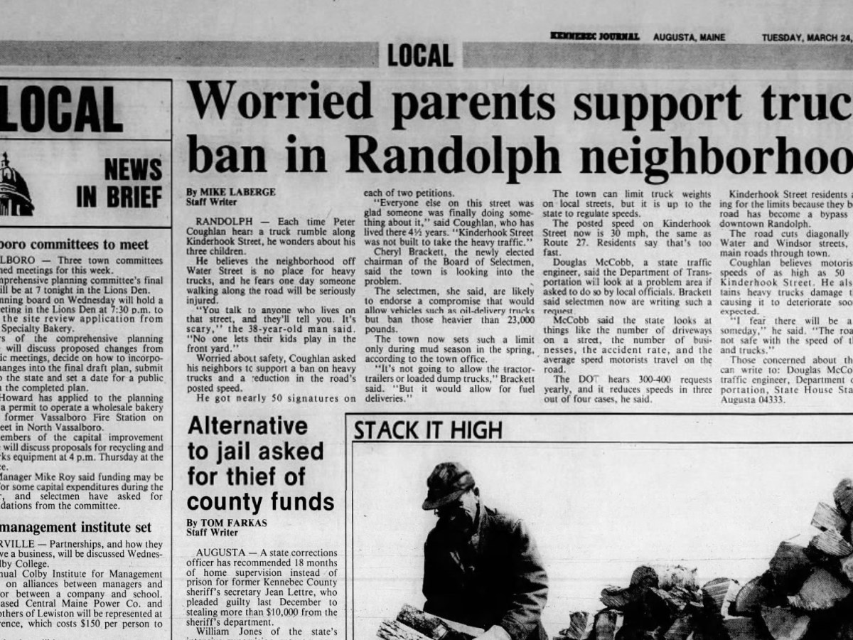 March 24, 1992: Parents support truck ban in Randolph neighborhood, Lincoln county official seeks senate seat, and former Gardiner Little League treasurer ordered to repay $16K to league, most of it stolen