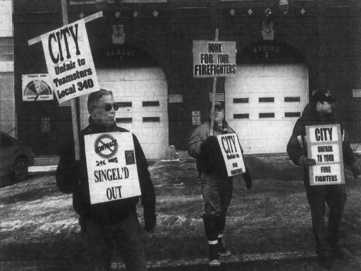 March 7, 2003: Waterville firefighters participate in picket outside fire station, legislators have doubts on savings idea for Maine colleges, and thickest ice in 10 years poses high flood risks in area