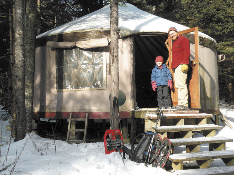 Tucked into the forest, high on a ridgetop in the hills of Montville — about 20 miles west of Belfast — is a unique and comfortable spot to spend a winter’s night, known as Goose Ridge Yurt. Easily accessible via a five-minute hike, snowshoe or ski trek uphill from the parking area off Halldale Road, the yurt feels amazingly remote, as if it were miles deep in the woods.