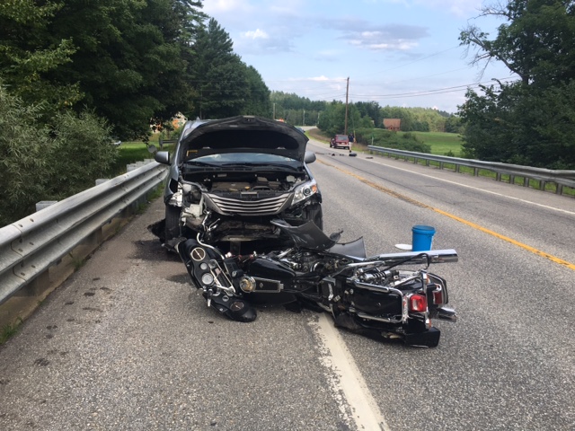 Daniel Gautreau, 59, was riding east on Route 2 in Hanover when his Harley-Davidson hit the car in front of him and ended up in the path of an oncoming vehicle.