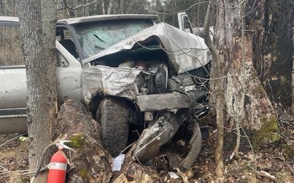 The driver and passenger of a pickup truck were seriously injured when their truck crashed into a ditch, hit a rock and struck a tree, according to the Somerset County Sheriff’s Office.