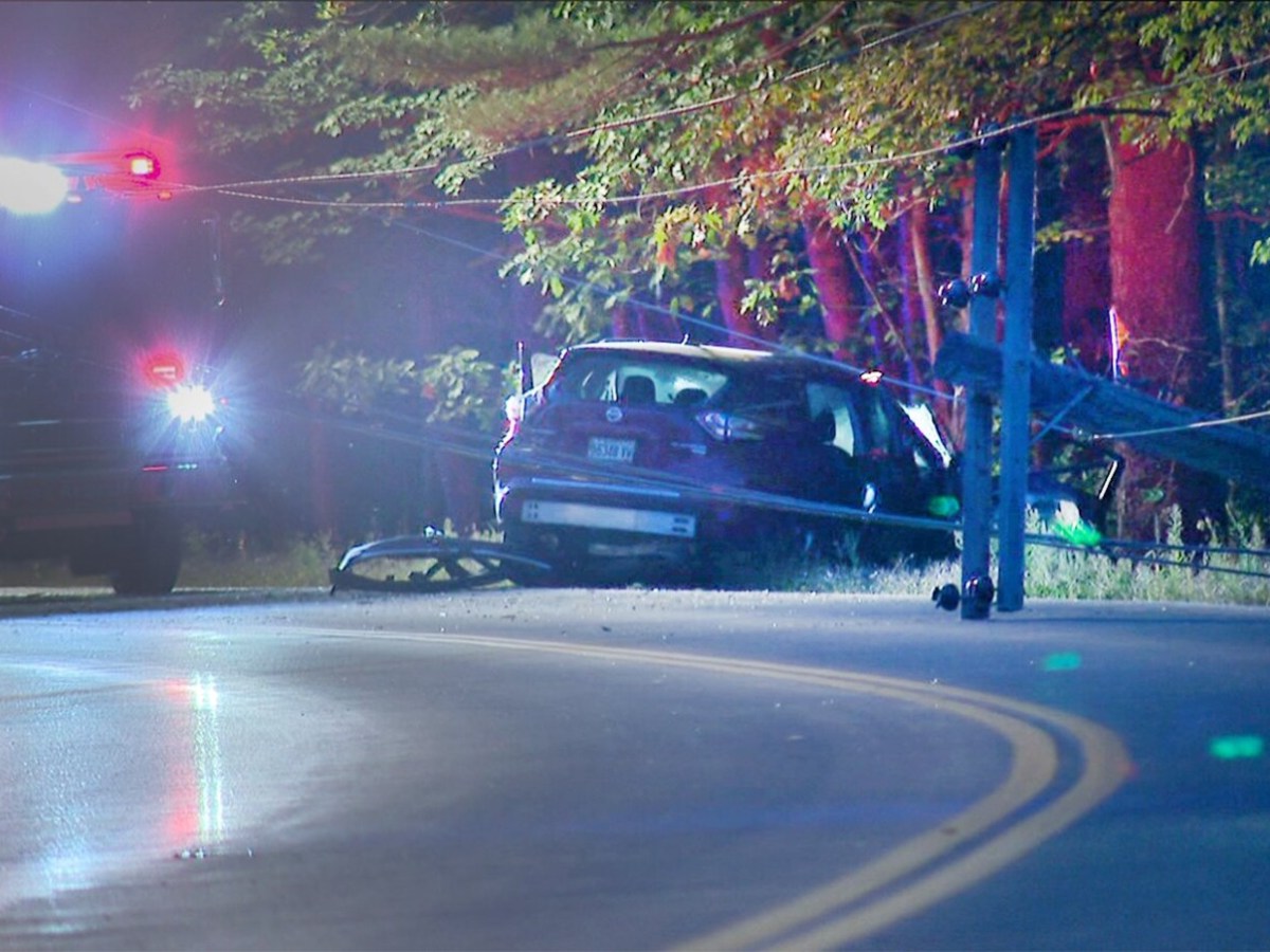 The crash snapped a utility pole and knocked out power to roughly 800 customers, authorities said.